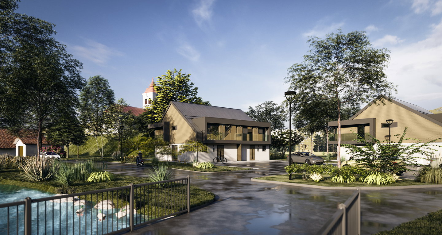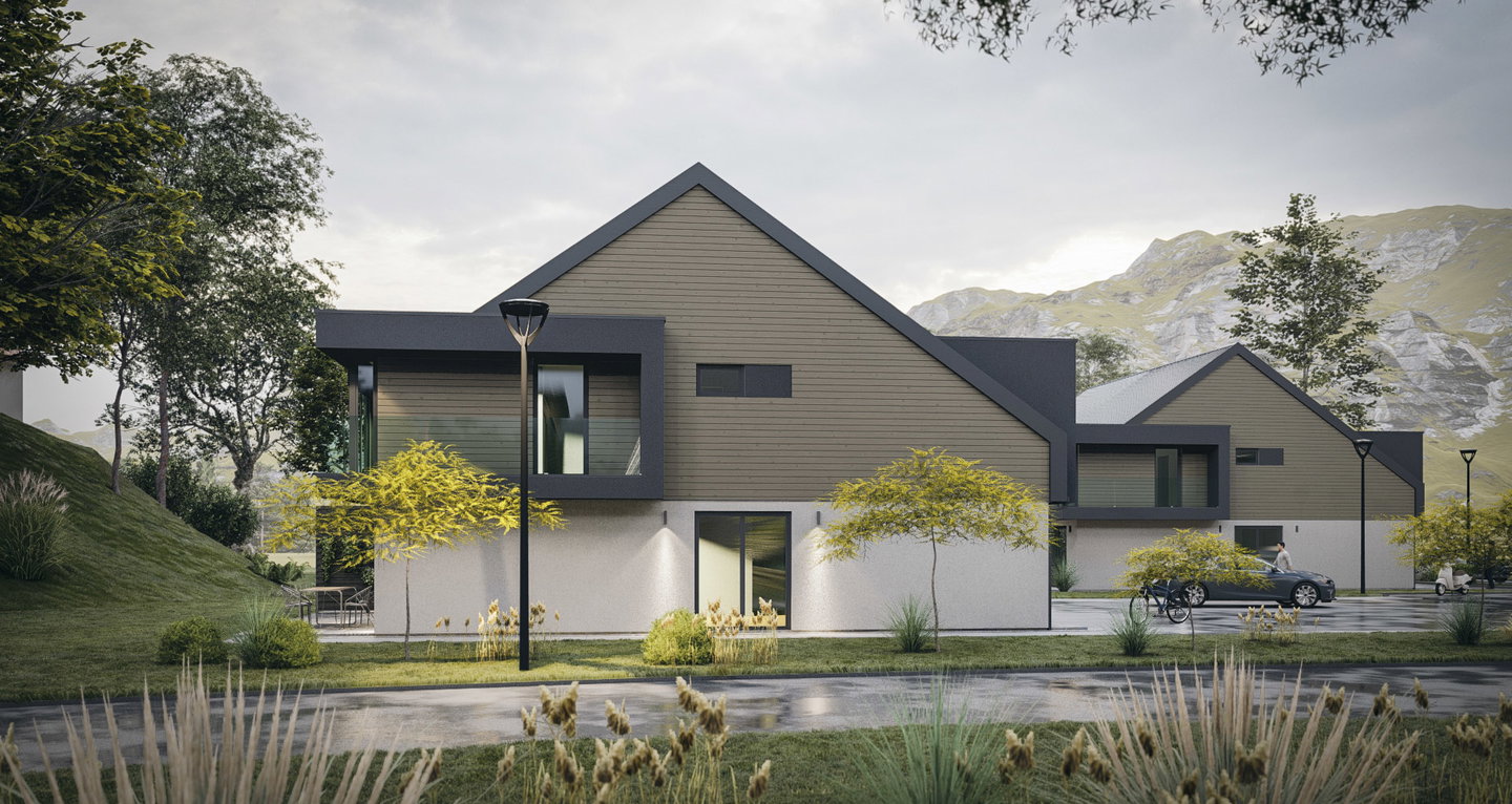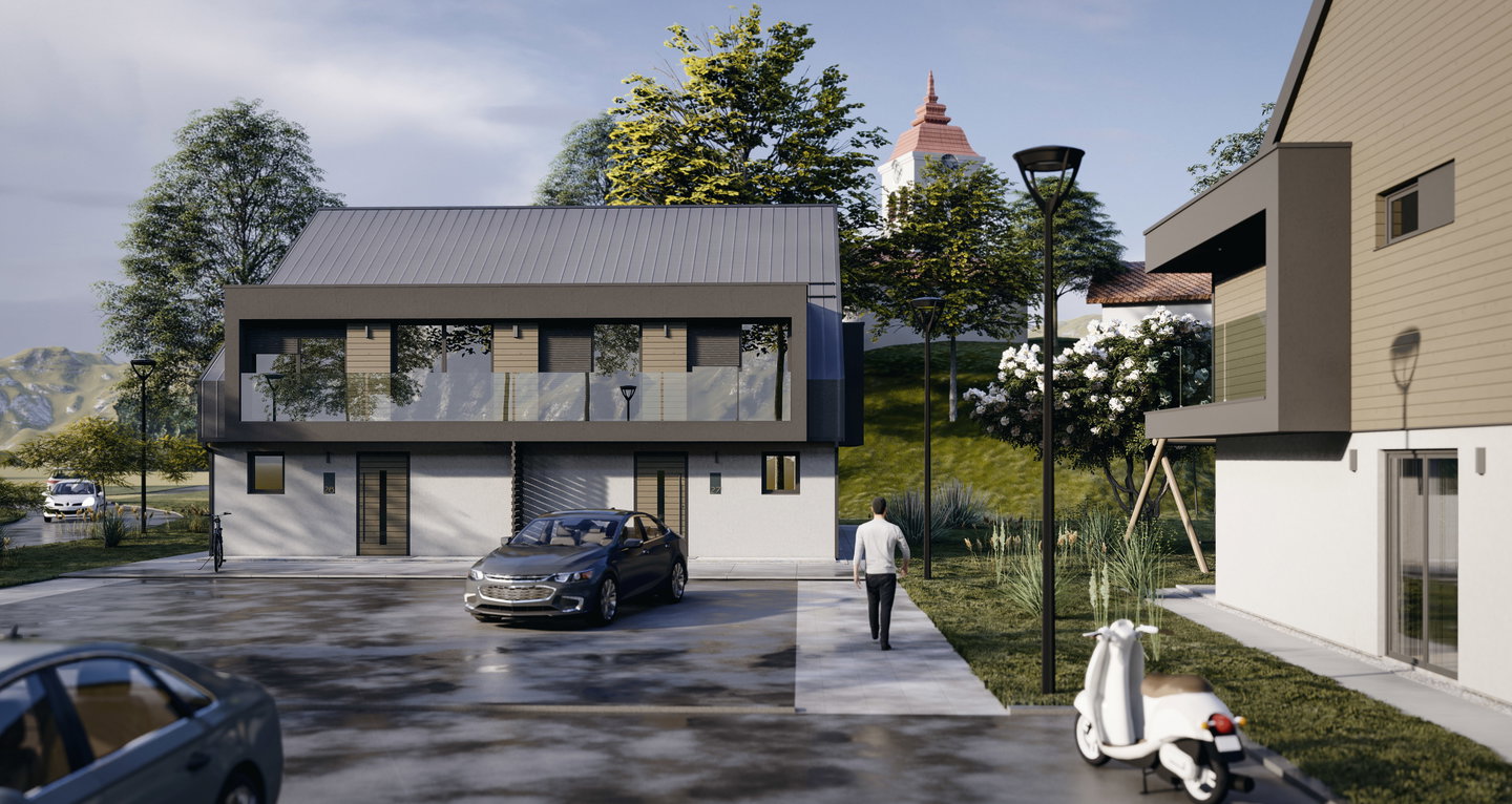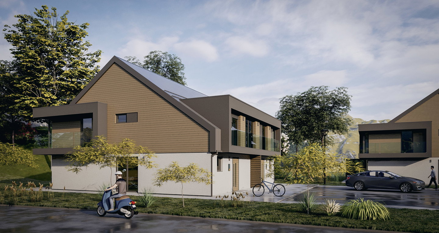 Novogradnja bo vmeščena v naselju, kjer gradnja ni strnjena, samostojnih in dvostanovanjskih hiš, ki se nahaja sredi zelenja, s prelepimi razgledi na Julijske in Kamniške Alpe. Izvajalec del je podjetje HIŠA JUTING (delujejo več kot dve desetletji, preko 400 zaključenih projektov v Sloveniji, Italiji, Nemčiji in Avstriji). Zemljišče na katerem se bo gradilo, je osončeno tekom celega dneva, razgledi so odprti, v obomočju mestne infrastrukture v bližini (šola, vrtec, trgovina, mestni potniški promet, AC ring....). Dostop urejen do javne ceste.